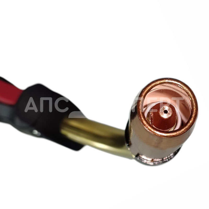 Горелка комплектуется ключевыми компонентами: держателем наконечника, коническим соплом (Ø16 мм), газовым диффузором и направляющим каналом (жёлтый, для проволоки 1,2–1,6 мм). Длина кабеля варьируется (3–5 м), что позволяет выбрать оптимальный вариант для разных задач.